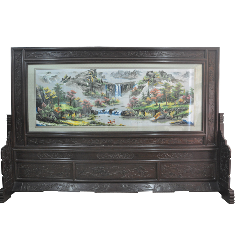 開業對于任何人來說都象征著事業新的起點,對于未來都充滿了希望,也因為如此,人們用各種各樣的方式來慶祝,來熱鬧,所以,開業送禮就是要送希望,送財源、送熱鬧!但開業并不是新鮮事物,自古就有,而且具有一定的形式規范,所以決定開業送禮送什么一定要新穎,耳目一新,蘇繡屏風一直備受大家青睞,雞翅木紅木框架器宇軒昂,蘇繡色彩艷麗,針法精美絕倫。  【出廠價】:82000元 【產品名稱】:長白勝景(雙面繡) 【產品規格】:圖案尺寸寬度300cm,高度120cm 外框整體尺寸寬372cm,高265cm 【產品工藝】:手工刺繡 【產品材質】:真絲面料+雞翅木+桑蠶絲線+玻璃